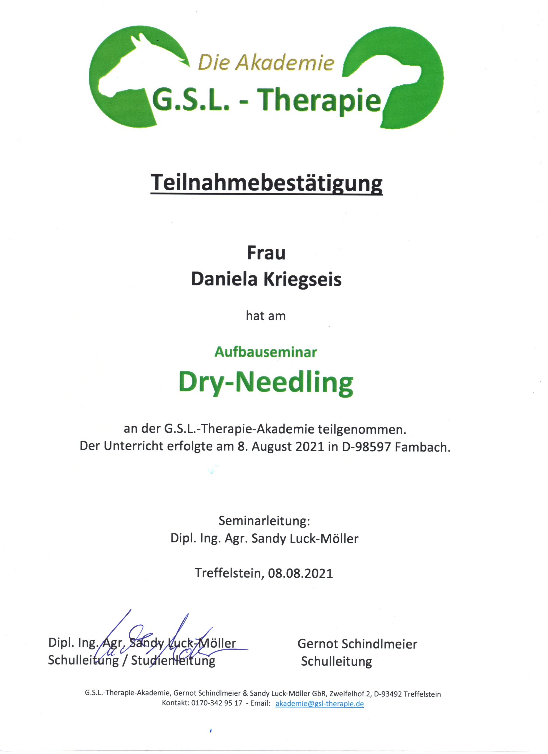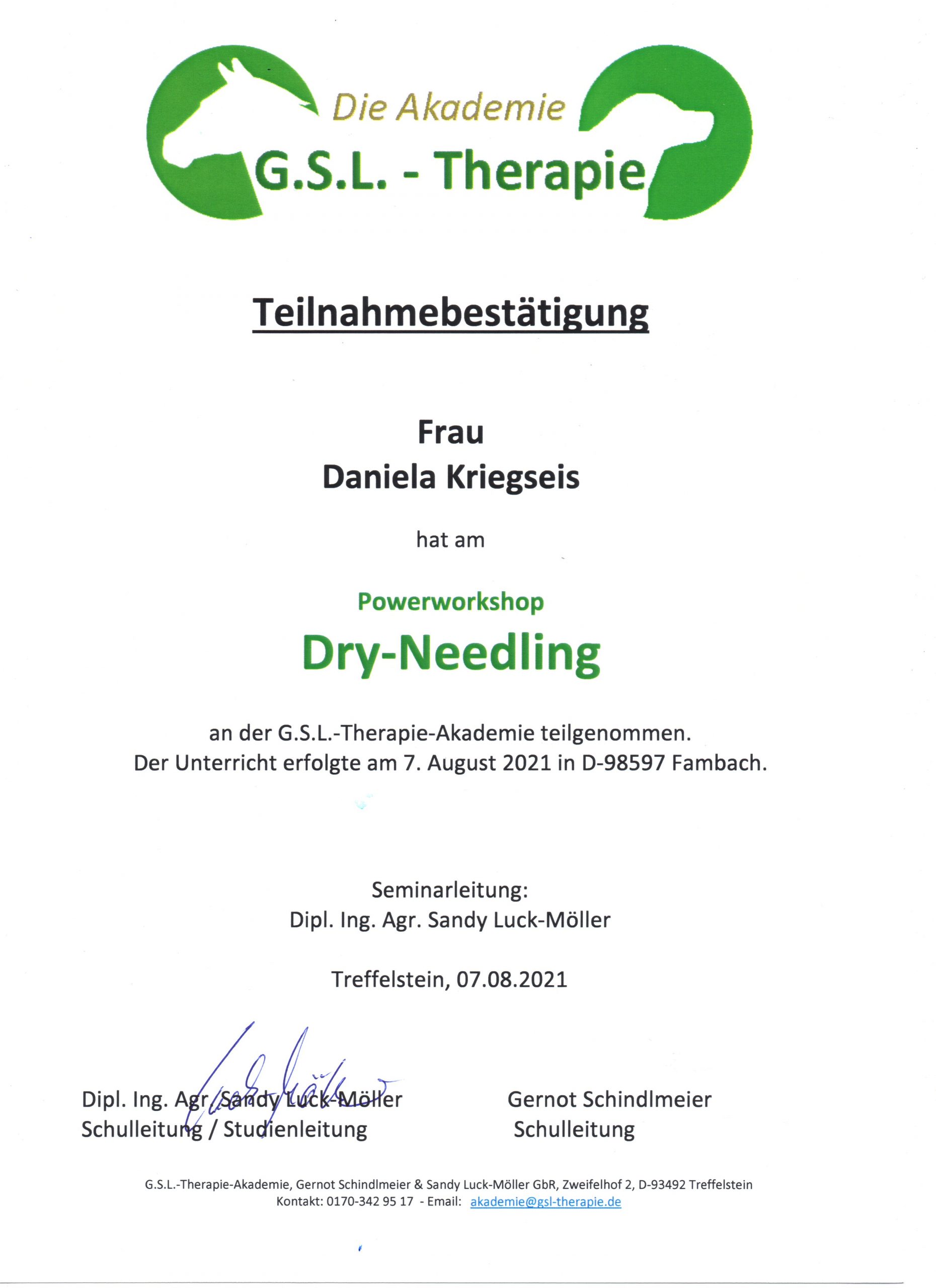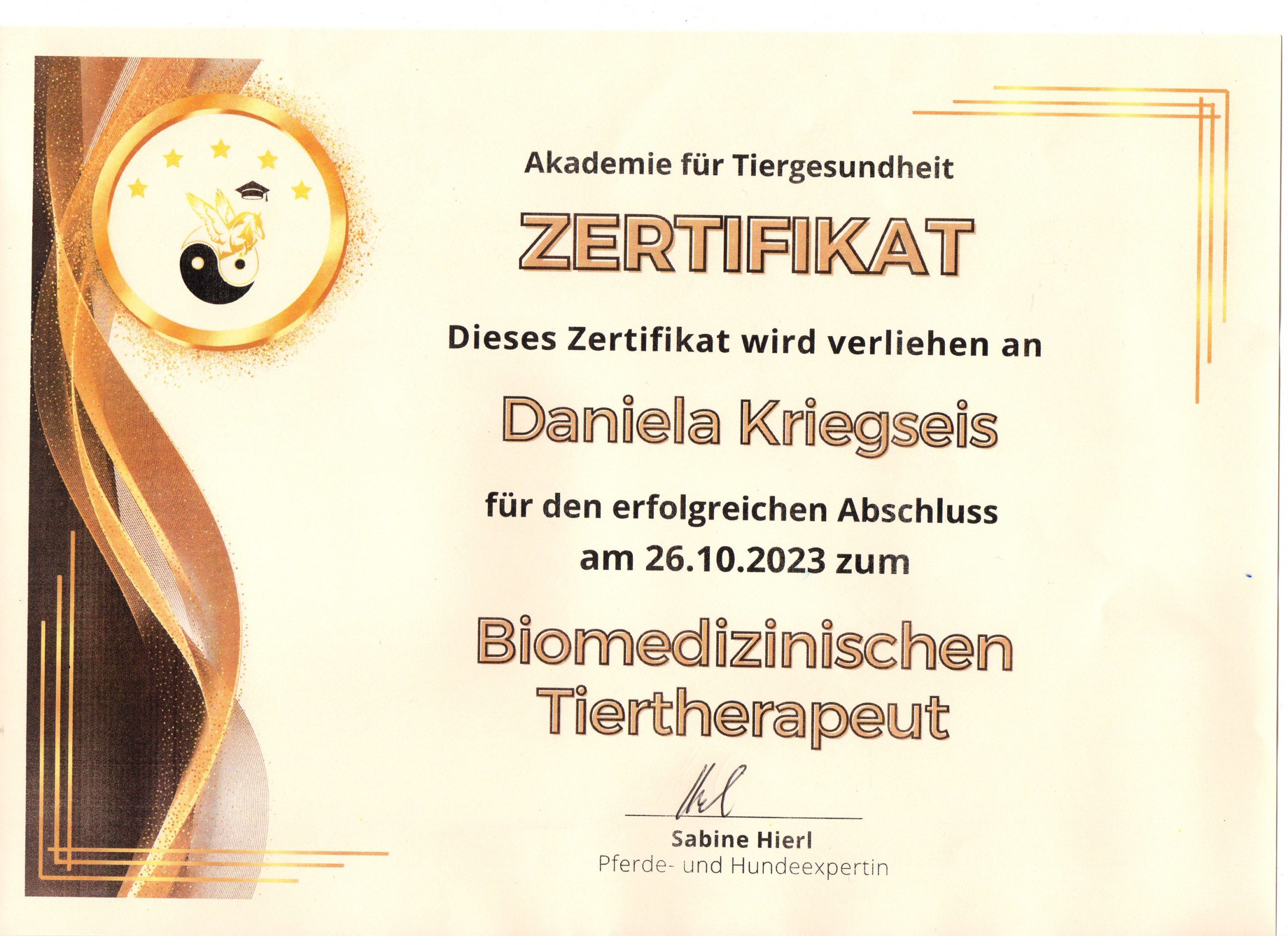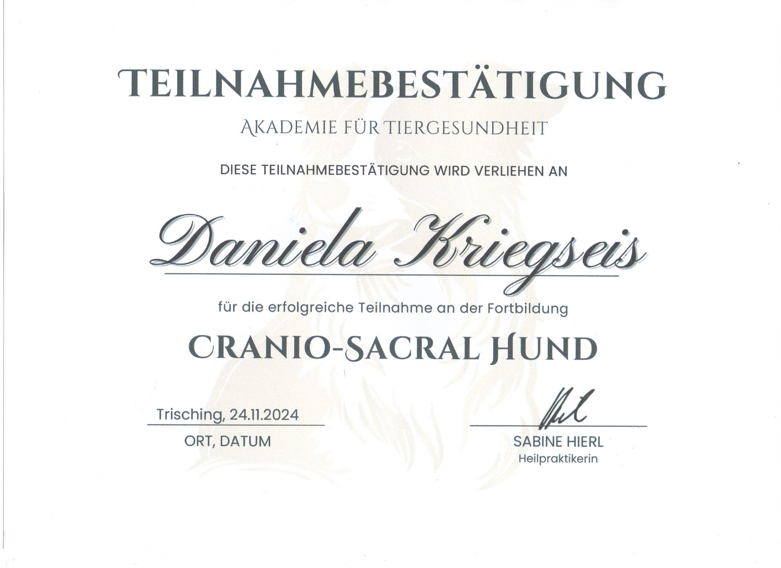 Nachdem ich zahlreiche Bücher zur Tierakupressur studiert hatte, wurde mein Wunsch, mehr über Tierakupunktur zu erfahren, immer größer. So entschloss ich mich 2019, eine Ausbildung zur Tierakupunkteurin bei Carola Krokowski zu absolvieren. Diese Entscheidung öffnete mir die Tür zu noch tieferem Wissen und einer noch breiteren Methodenkombination in der Naturheilkunde.