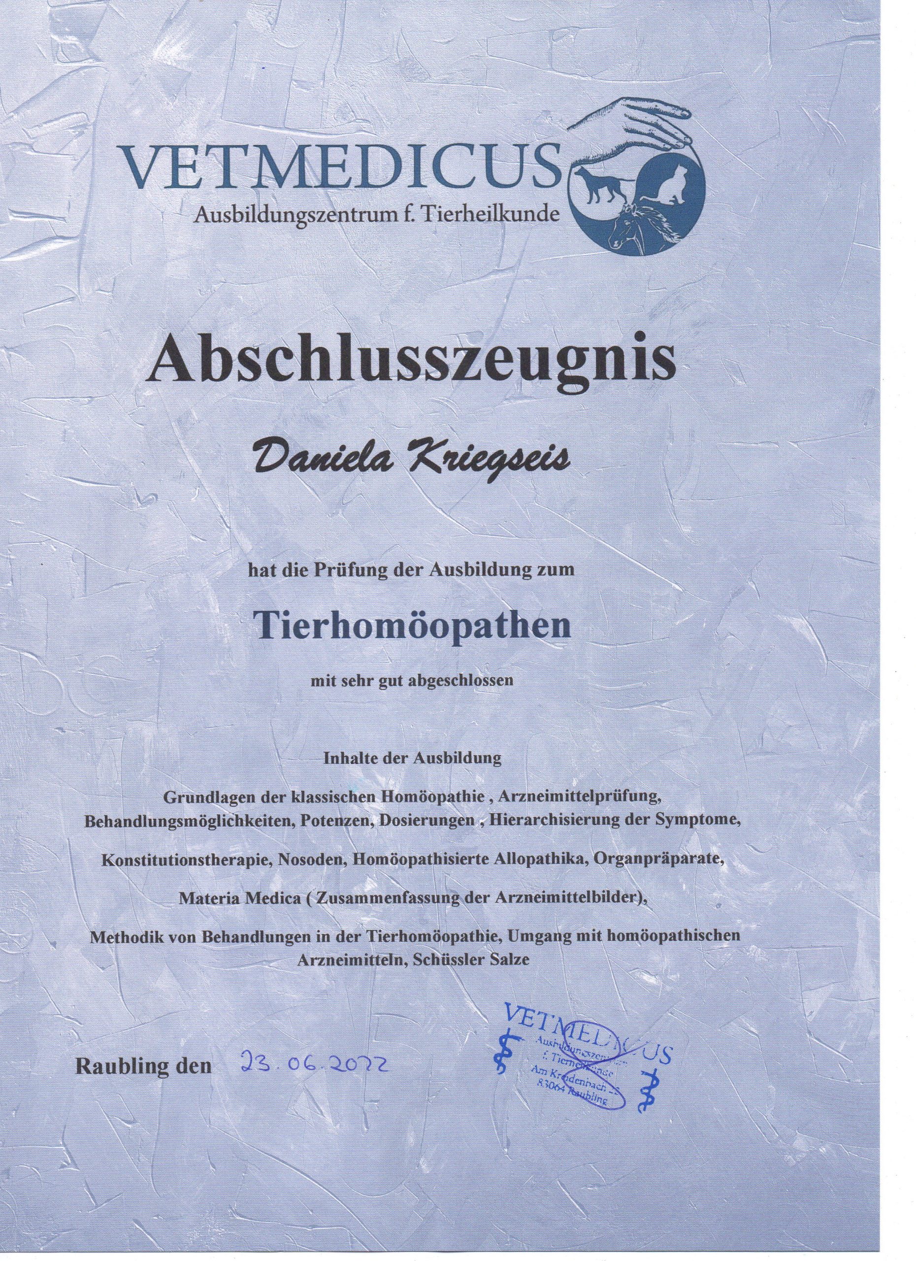 Seitdem hat mich die Leidenschaft für ganzheitliche Heilmethoden nicht mehr losgelassen. Ich bilde mich kontinuierlich weiter und erweitere mein Wissen, um stets die bestmögliche Behandlung für jedes Tier anzubieten.